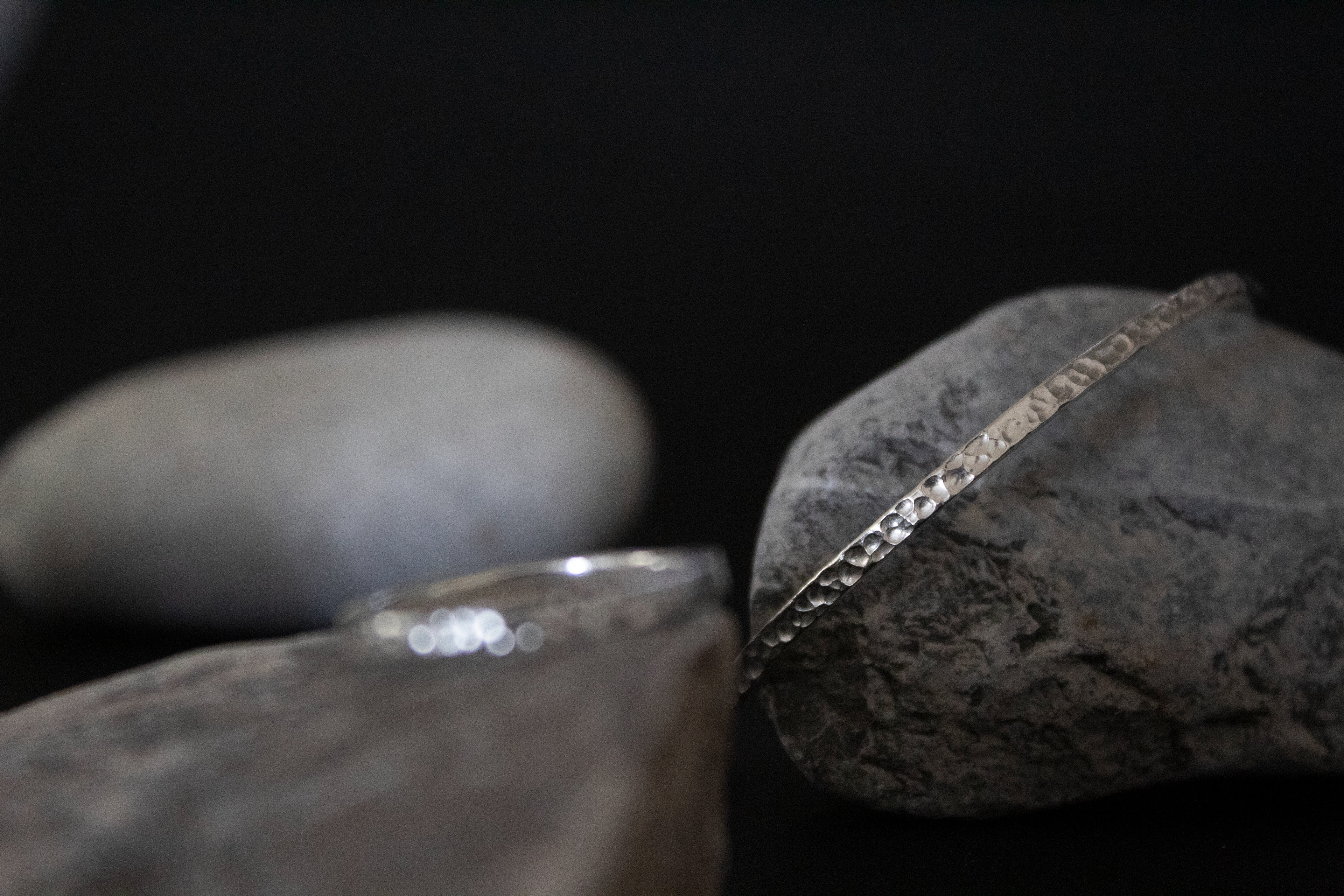 "Familia" is a set of rings and bracelets featuring the same timeless design for a father and his two children.
