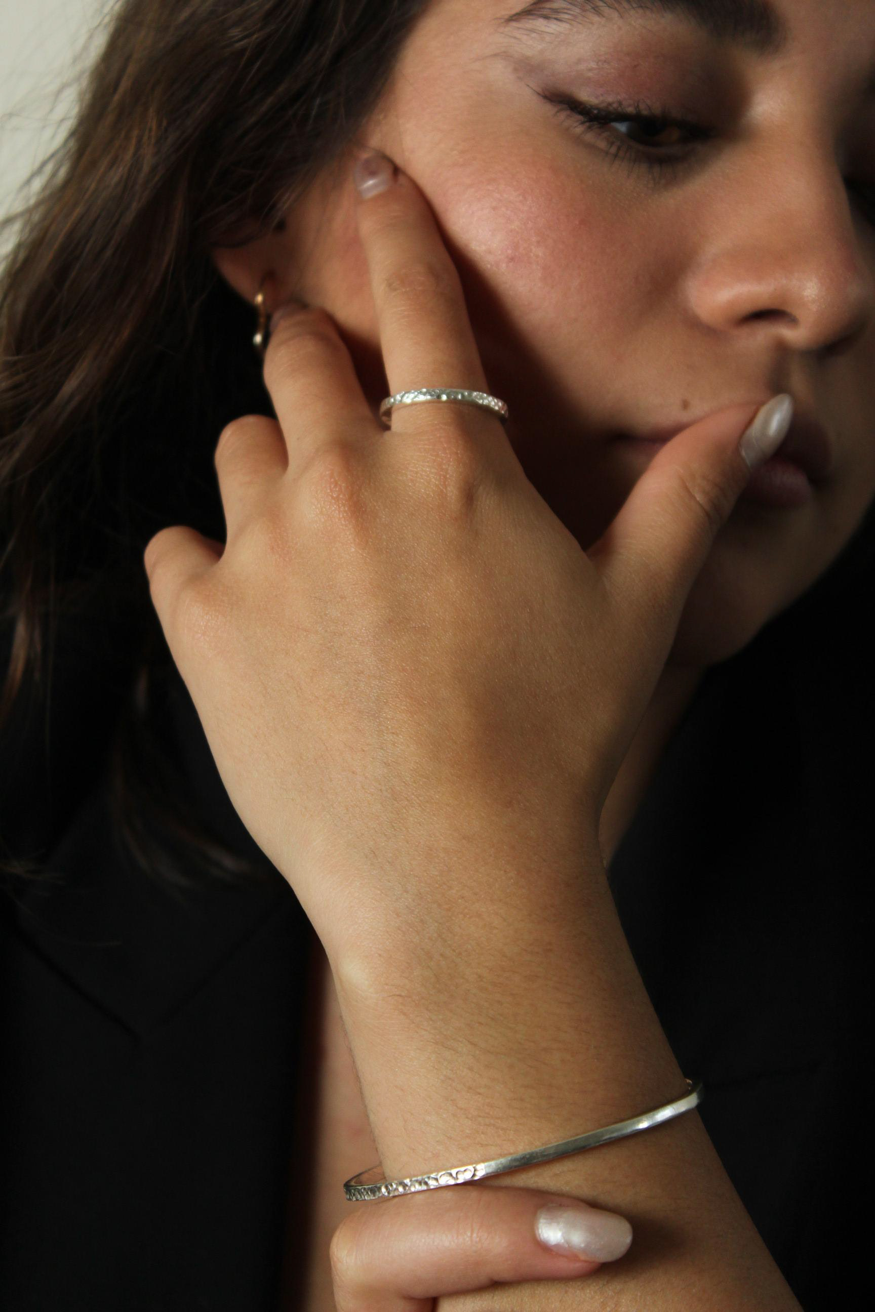 “Familia” es un juego de anillos y brazaletes bajo el mismo diseño atemporal para un padre y sus dos hijos.