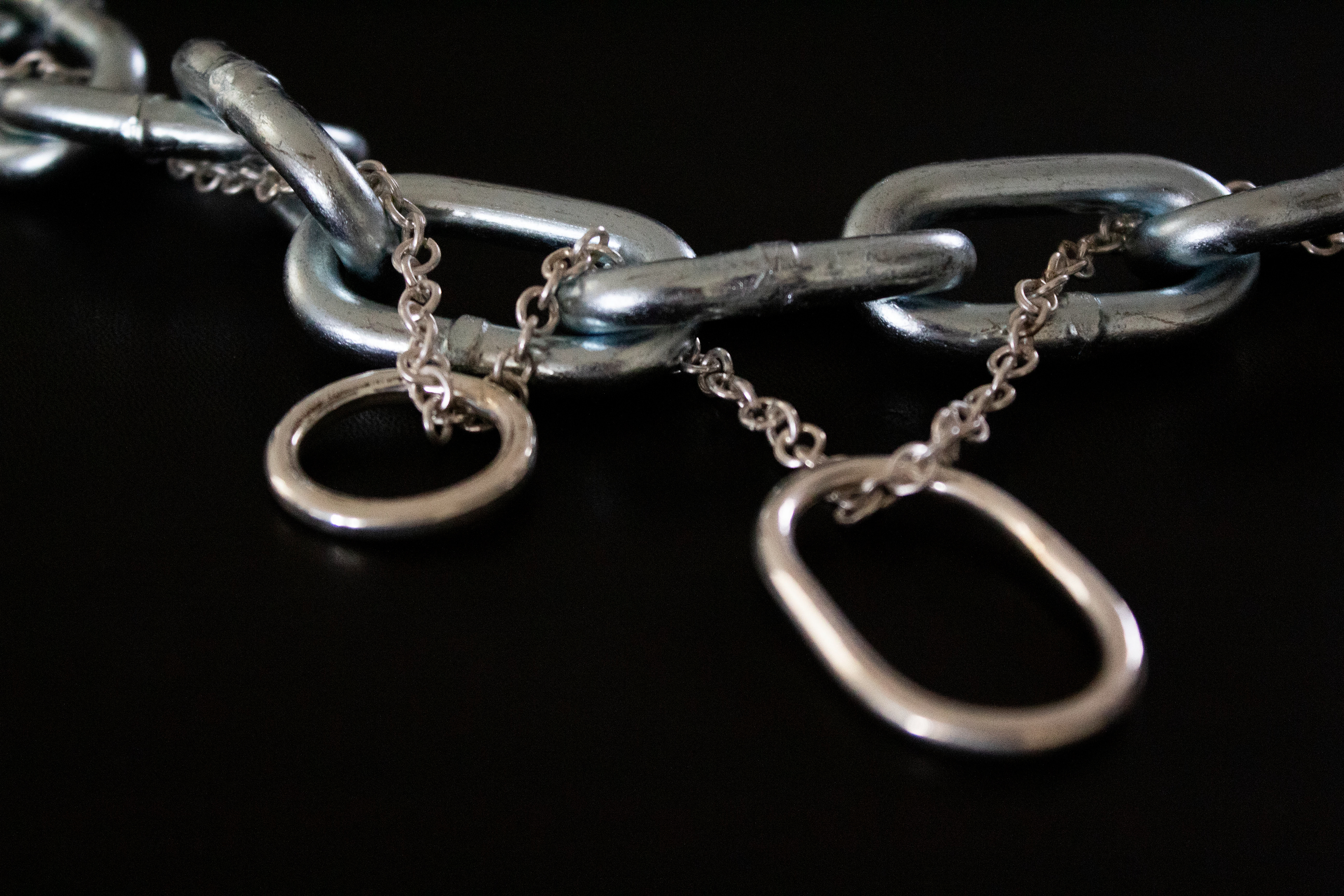 Family jewelry set consisting of a bracelet and necklace with round links, and 3 rings. Made from .925 silver.