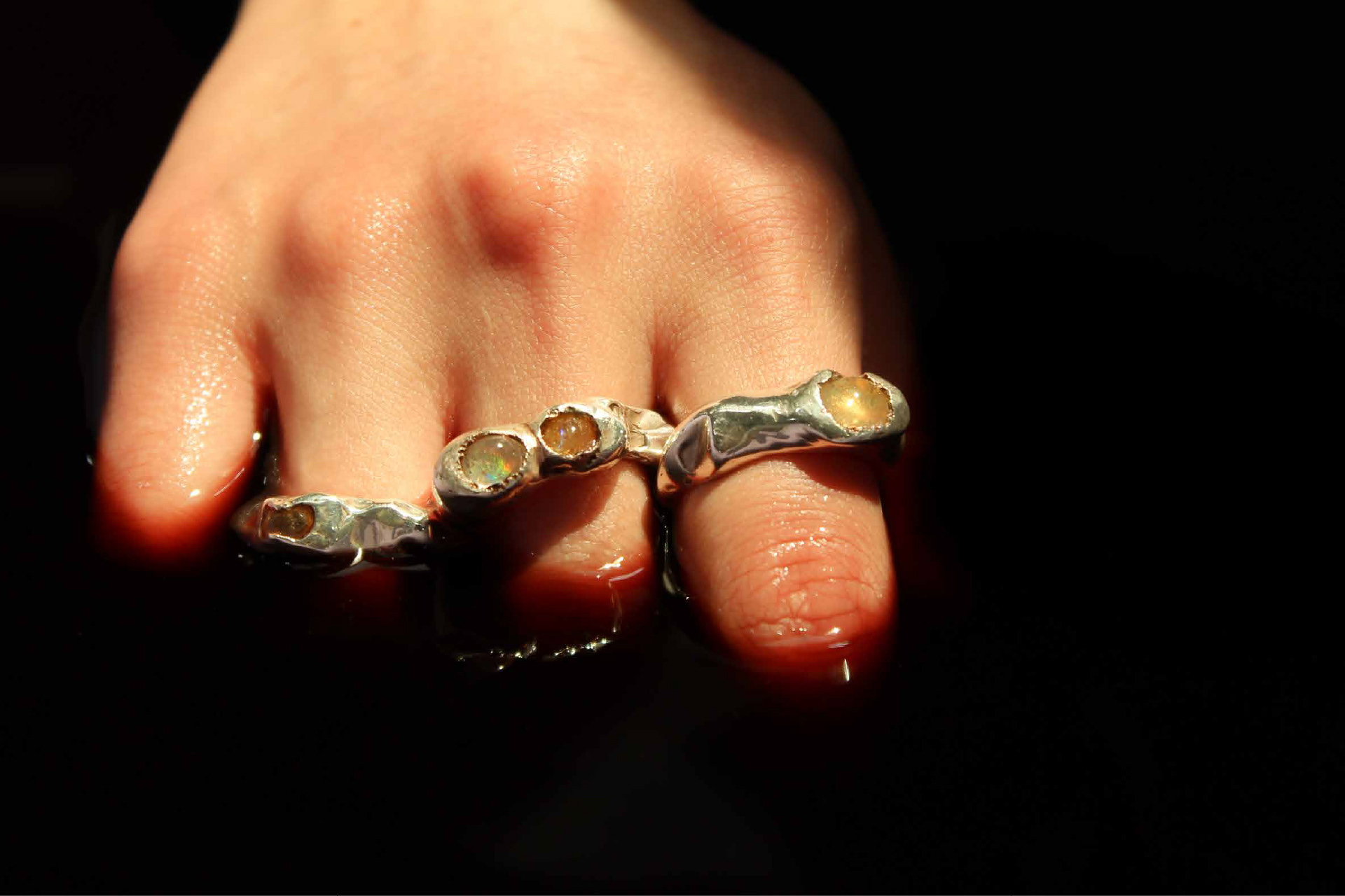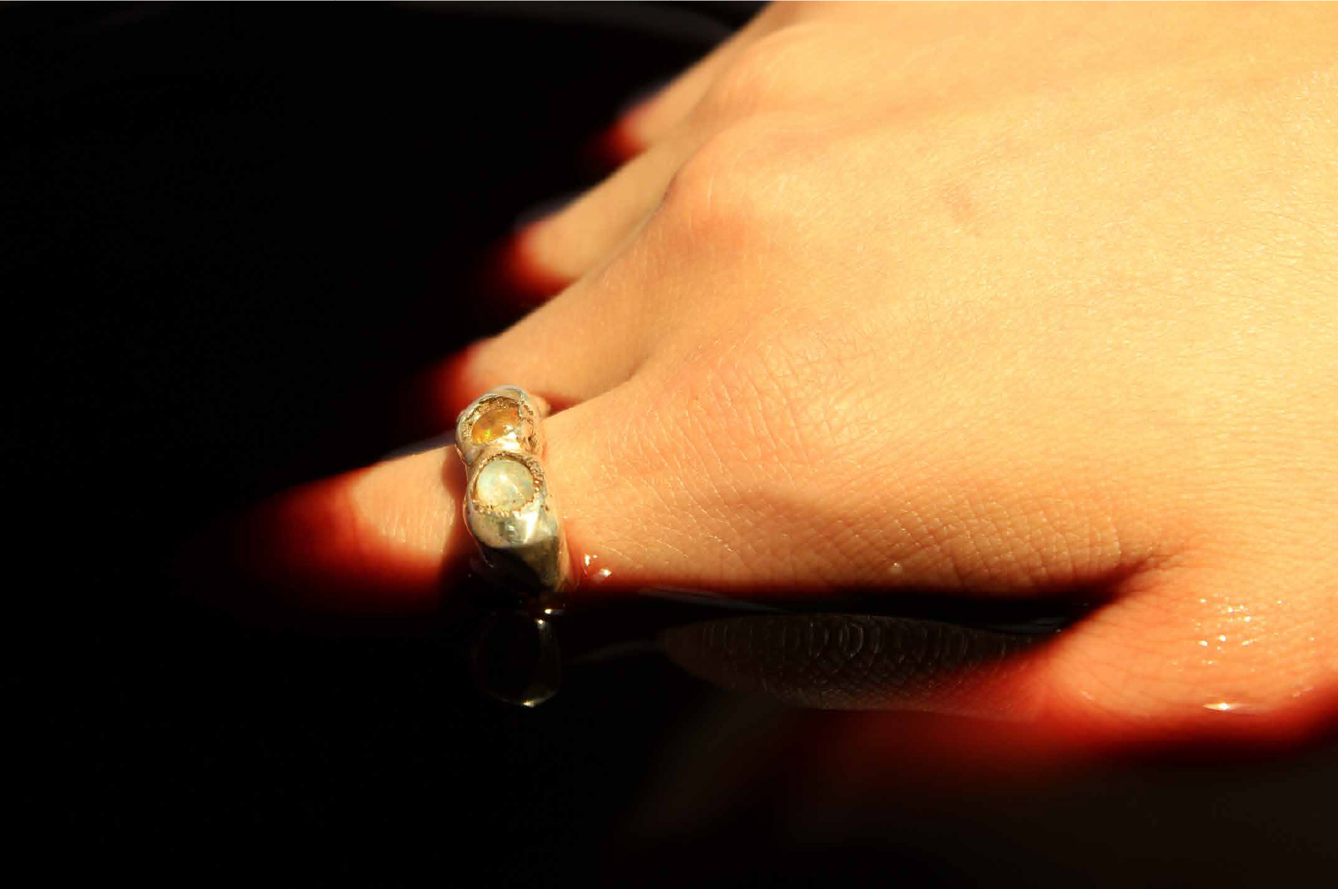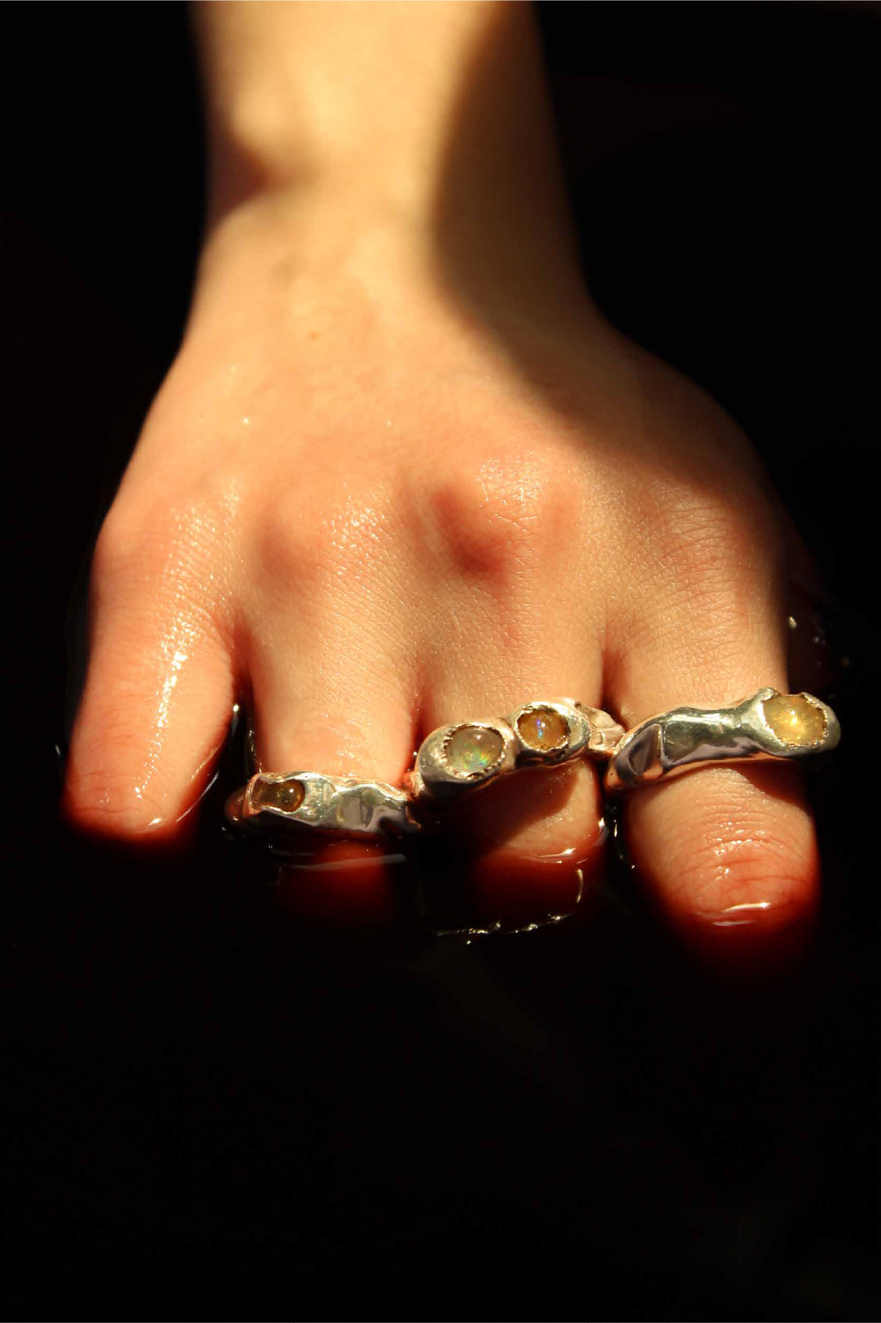 Conjunto de 3 anillos en plata .925, con ópalos amarillos y naranjas incrustados.