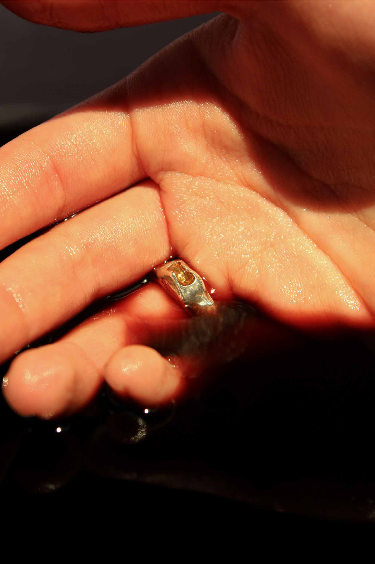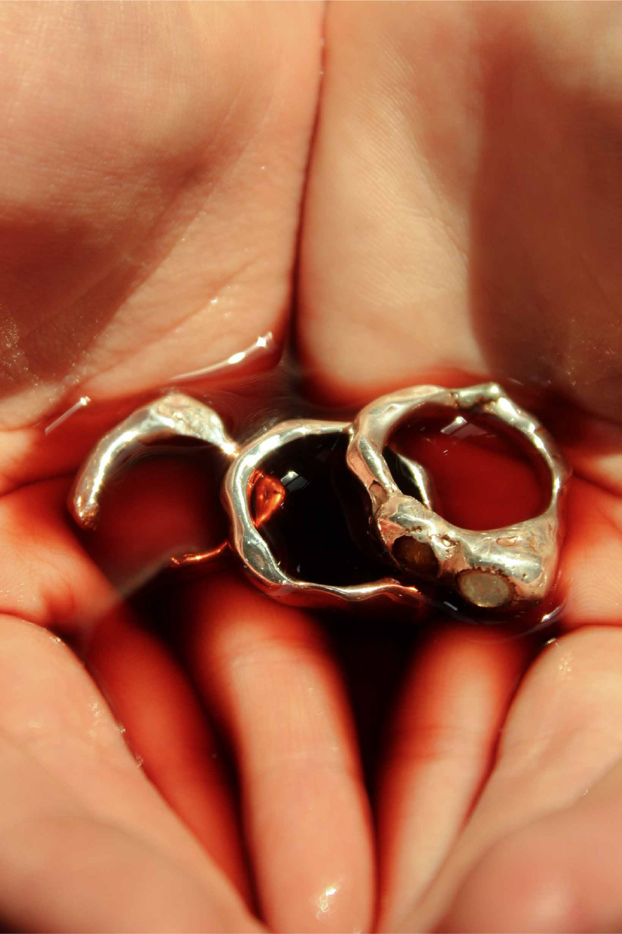 Set of three rings of .925 silver, inlaid with yellow and orange opals.